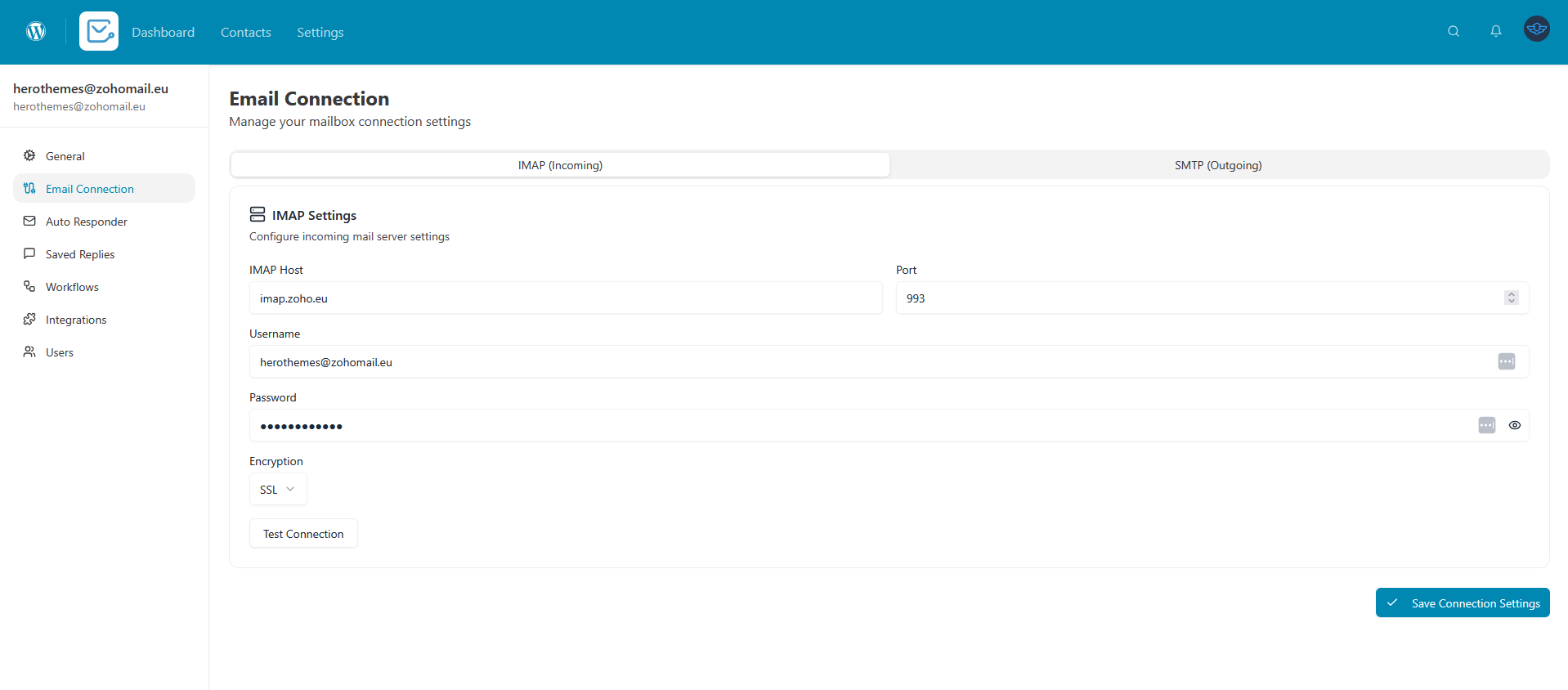 View and update your IMAP/SMTP connection settings.