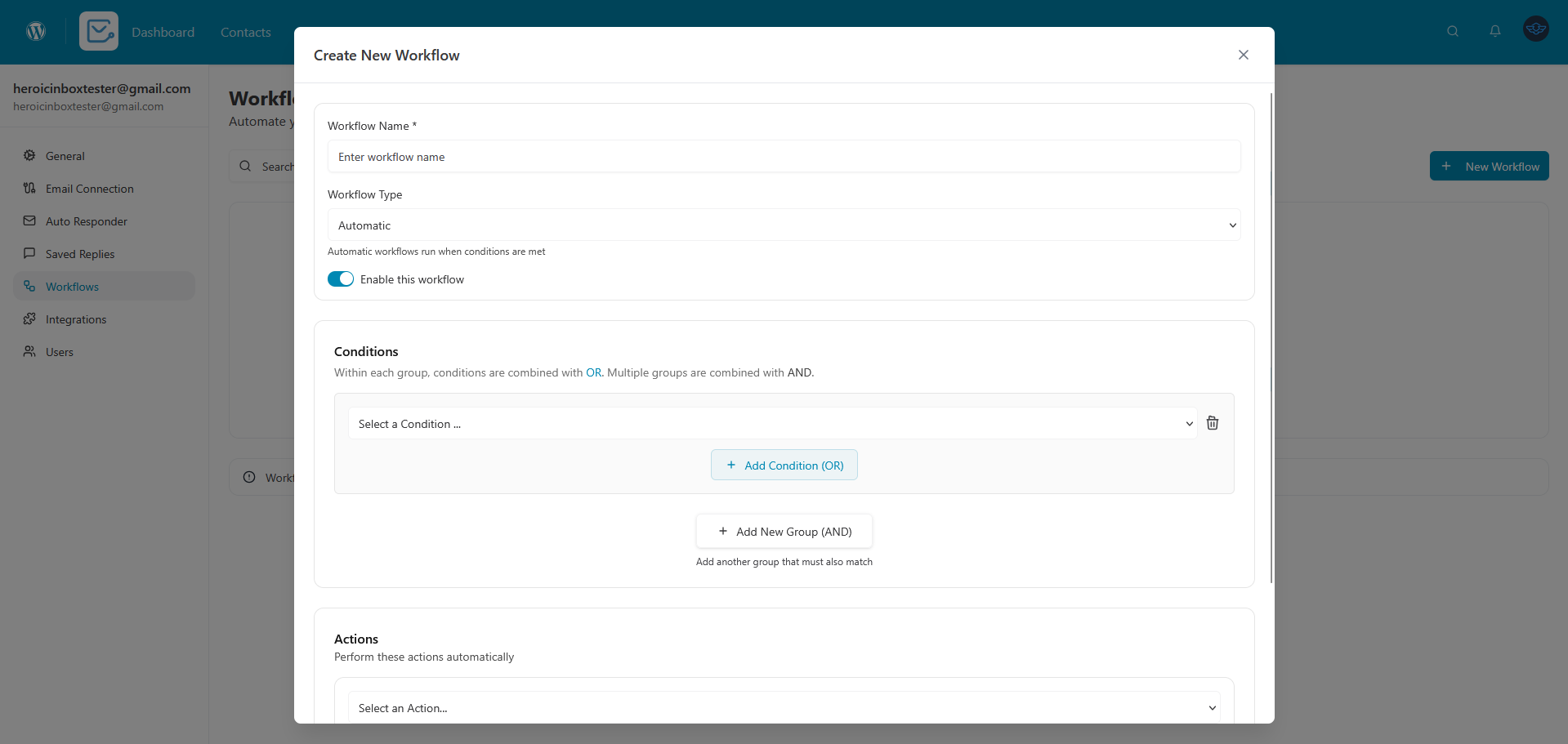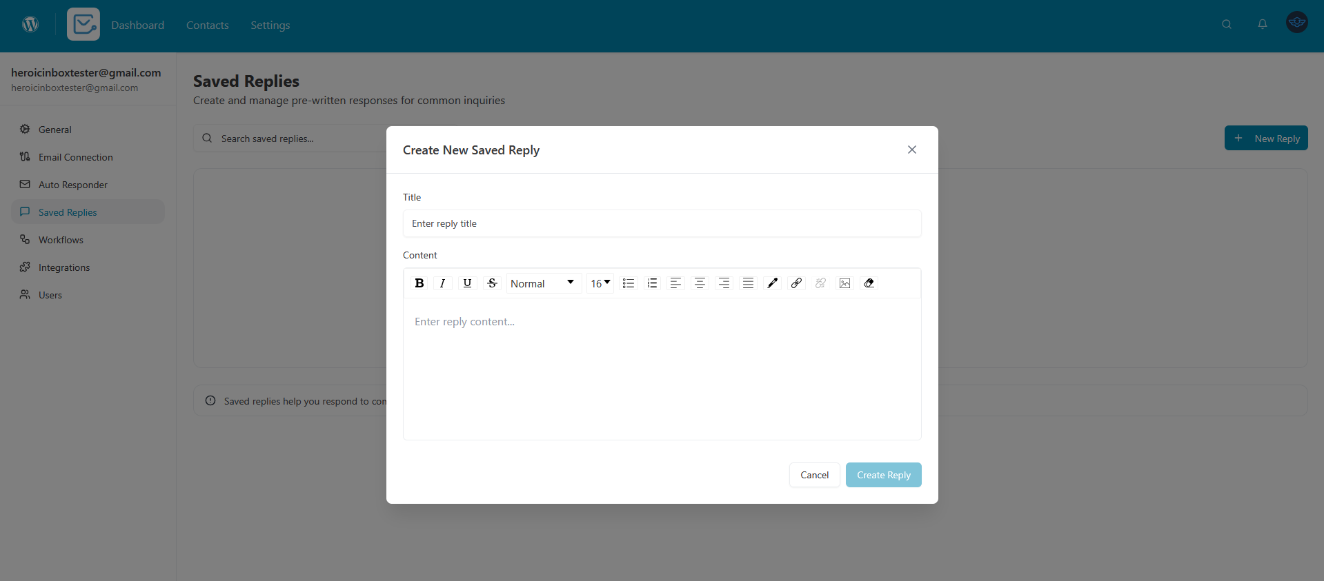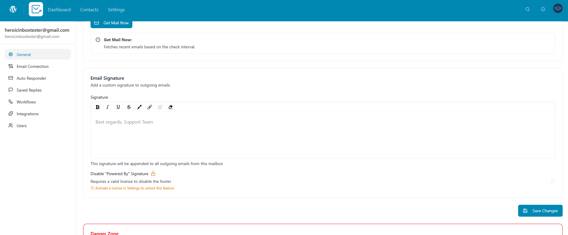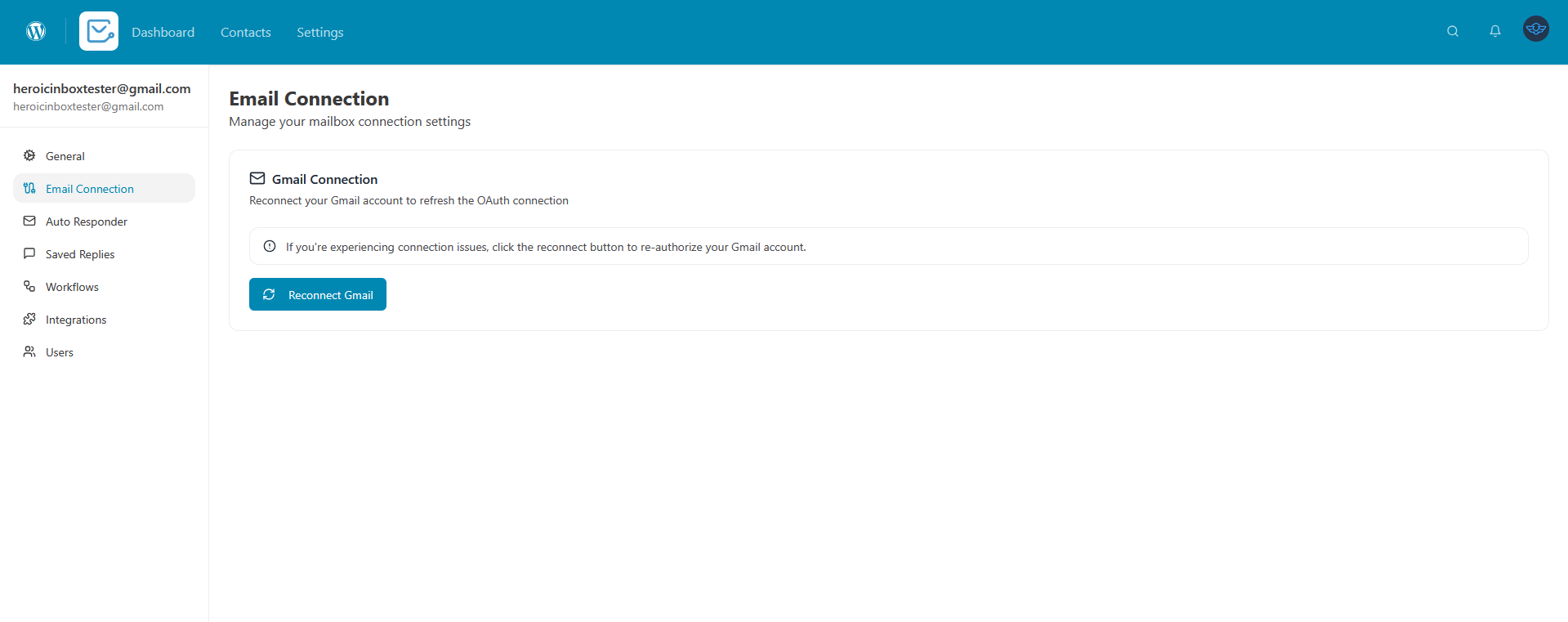 1. Go to Heroic Inbox in your WordPress dashboard