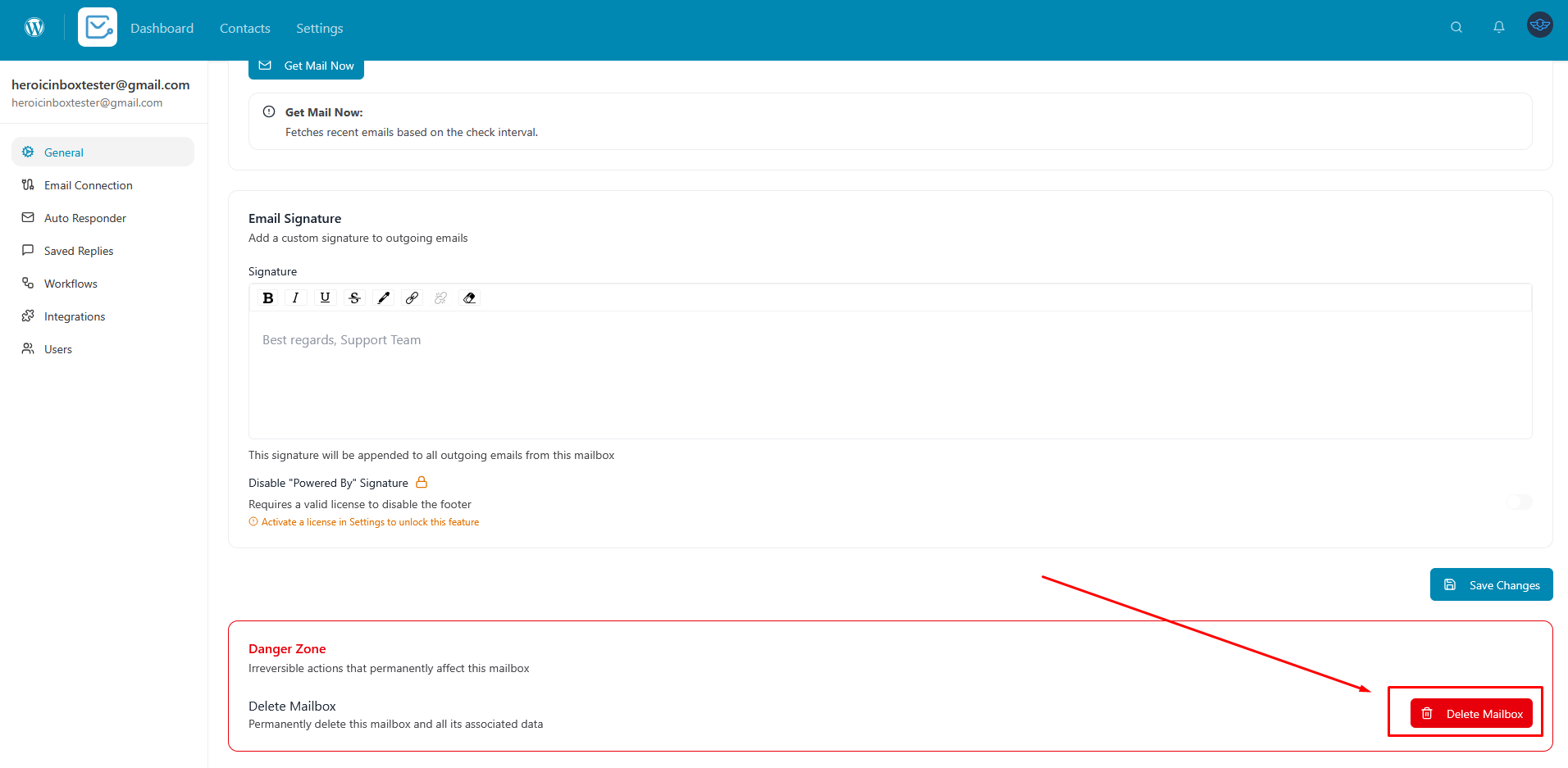 2. Click “Delete Mailbox” button