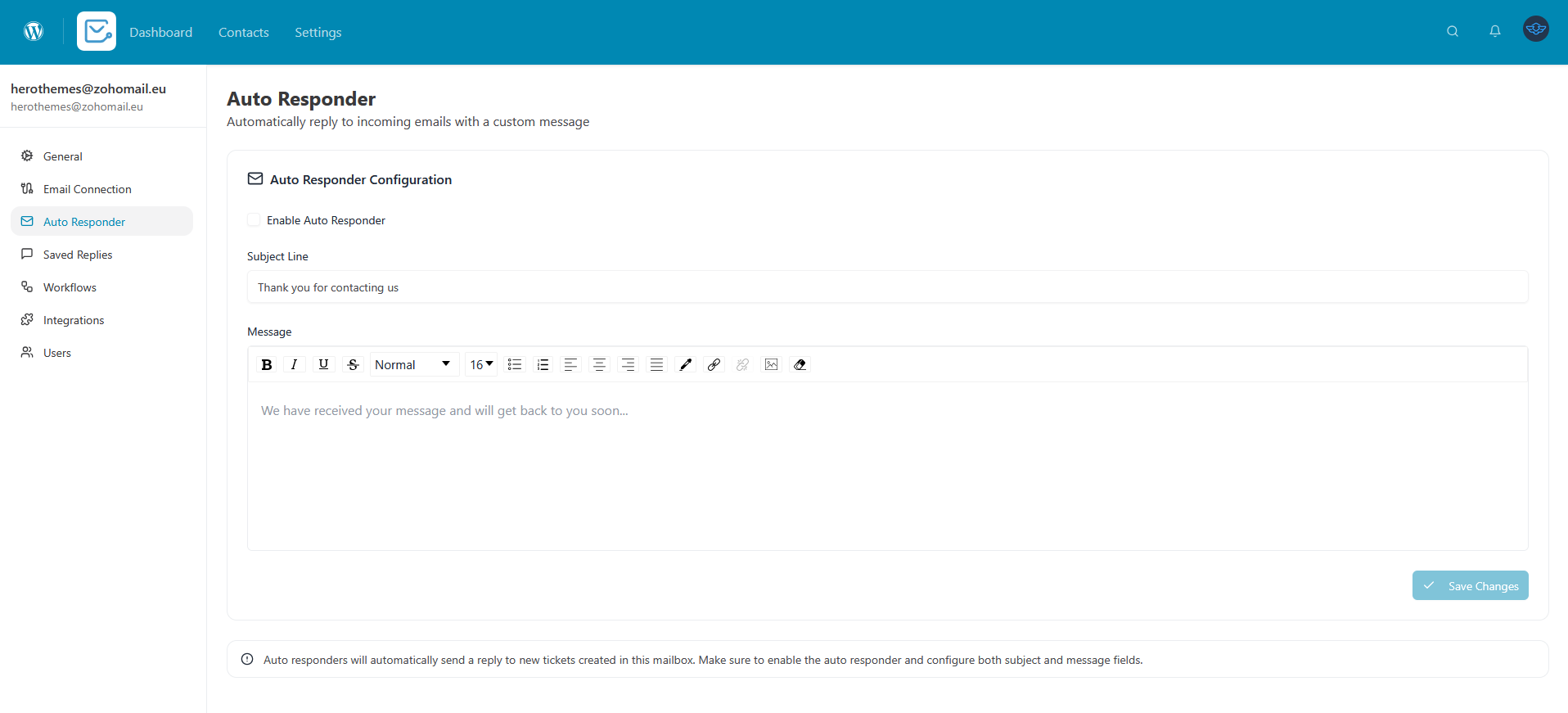 • Customize the subject (e.g., “We received your message!”)